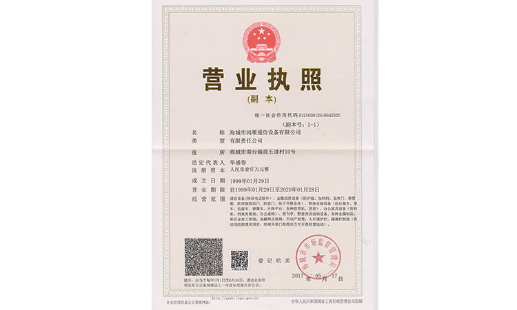 海城市鴻雁通信設(shè)備有限公司成立于1985年,位于海城市鞍海公路東側(cè),交通便利。注冊(cè)資金1000萬(wàn),占地面積17800平方米,職工120人,年產(chǎn)值600多萬(wàn)。法人代表畢盛春,曾多次獲得“中國(guó)誠(chéng)信企業(yè)家”稱號(hào)。